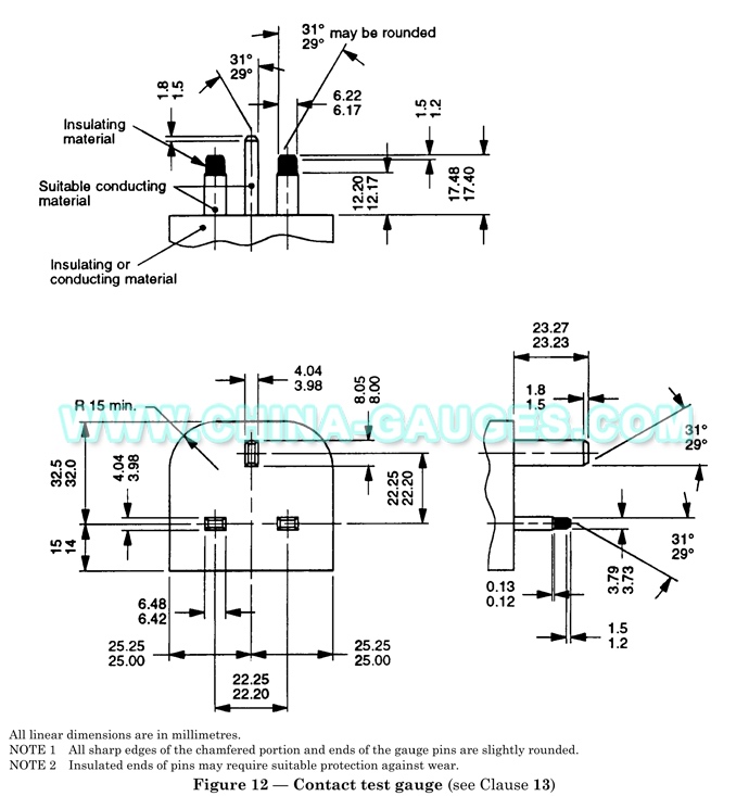 BS 1363-2 Figure 12 - Contact Test Gauge